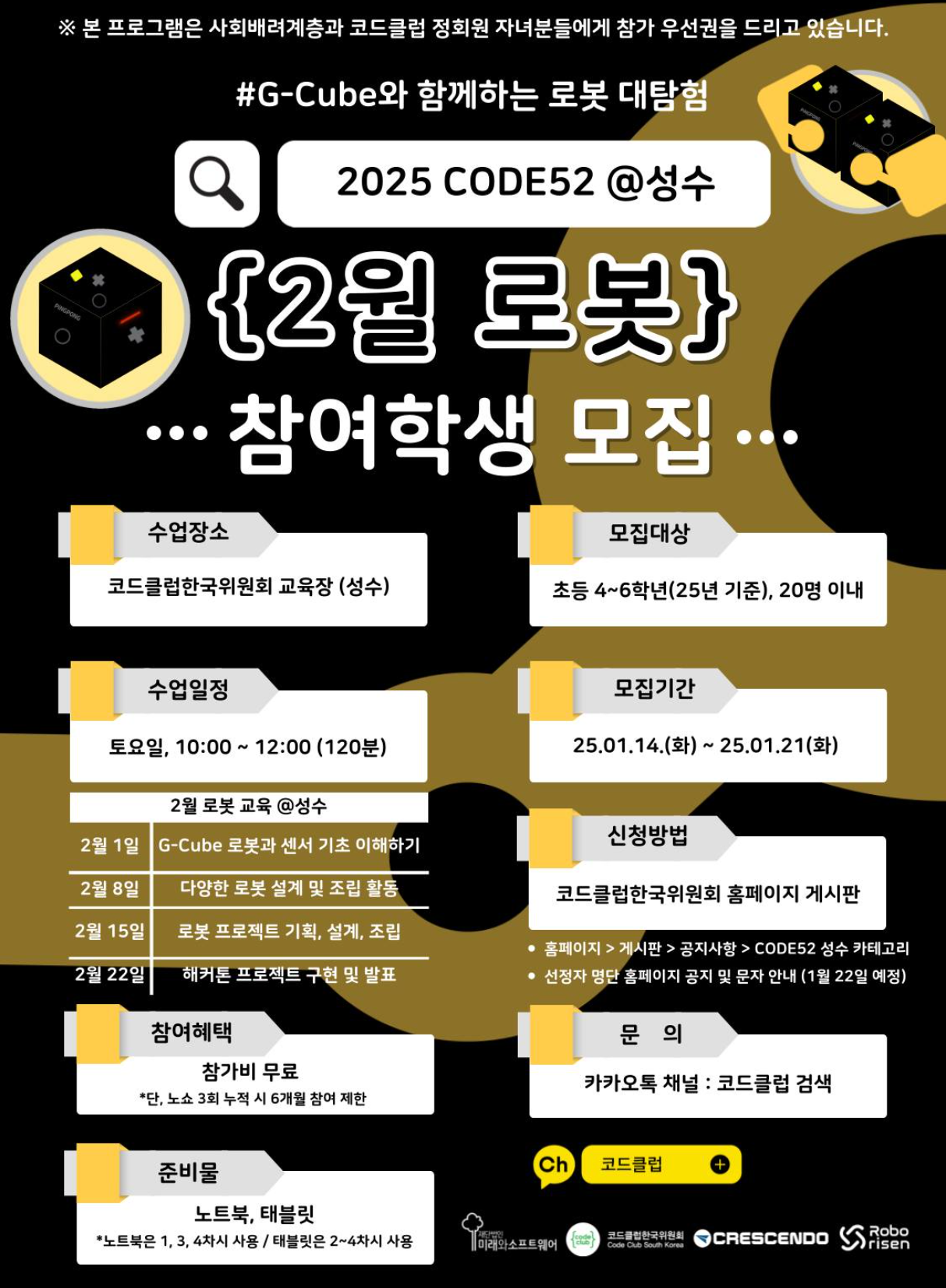 올해는 로봇분과를 신청하여 2월에 수업이 진행된다.